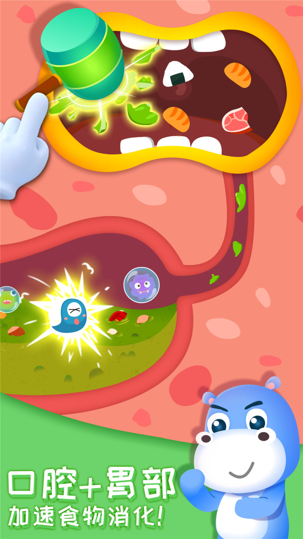 快来化身小战士,帮助疲惫的胃先生,克服消化难关。“突、突、突”,架起“胃液机关枪”,将食物粉碎掉。