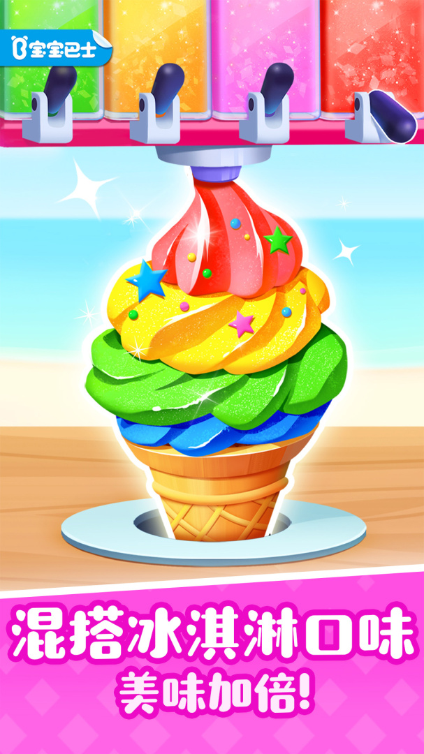 2、游戏提供非常多的场景,宝宝可以点击感兴趣的图标(如“可口冰淇淋”),将桌子上的食物吃掉就可以就解锁功能模块。