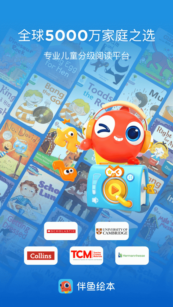 伴鱼绘本是一款专为3-12岁儿童设计的线上中英文阅读平台,汇聚全球优质原版英文绘本和中文图书。通过科学合理的分级阅读,让孩子在不同成长阶段享受如儿童游戏般的阅读体验。平台提供4000+本欧美原版英文绘本和700+本中文图书,支持互动阅读和全新学习方式,如配音创造专属绘本,提升语言表达能力。还有数百个精致动画和热门儿歌,助力孩子快乐磨耳朵,全面启蒙中英文。伴鱼绘本,让孩子在阅读中快乐成长,是中英文双语启蒙的理想选择。