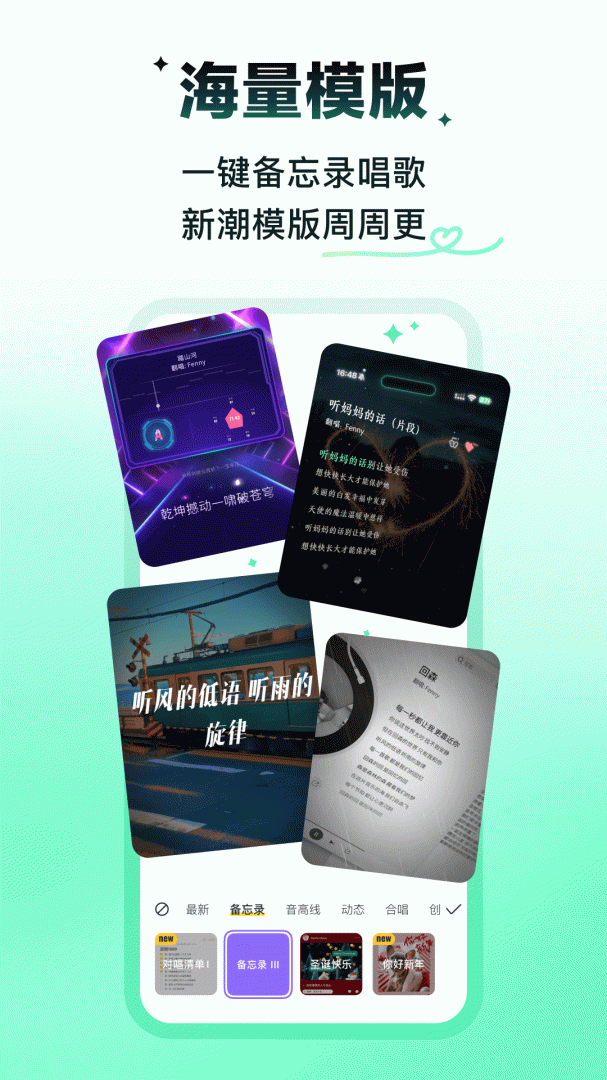 快手推出的手机K歌软件,采用K歌+音乐视频结合模式,助力用户用音乐表达情感。