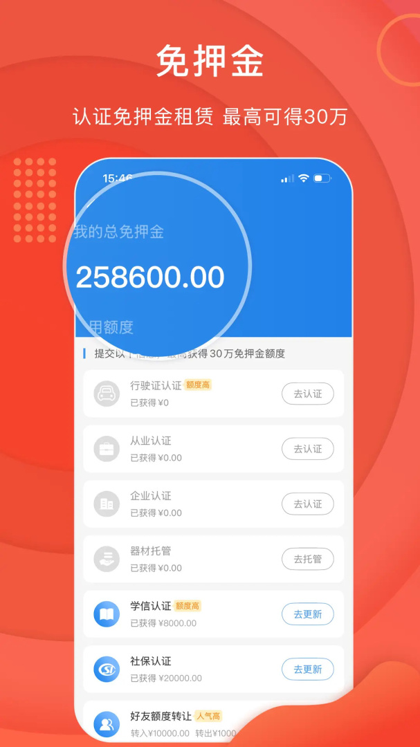 3、拥有免押金租赁,租赁平台的设备不需要支付押金;