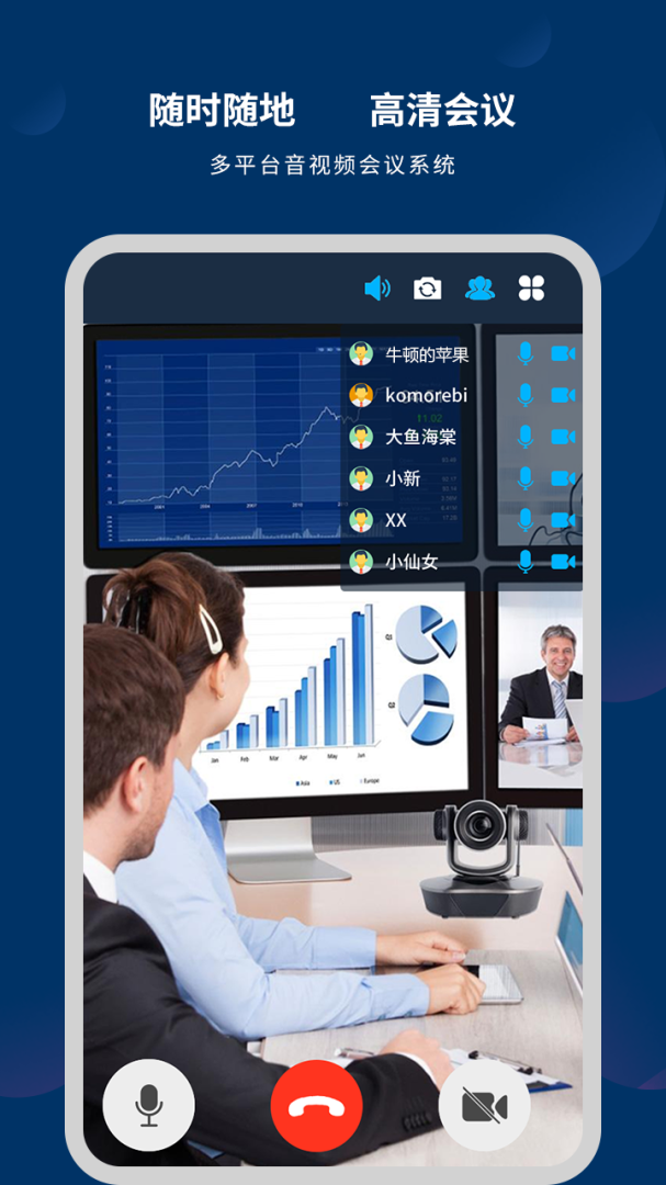 4、多人在线通话,参与工作的同事都可以加入到会议中,线上讨论事情