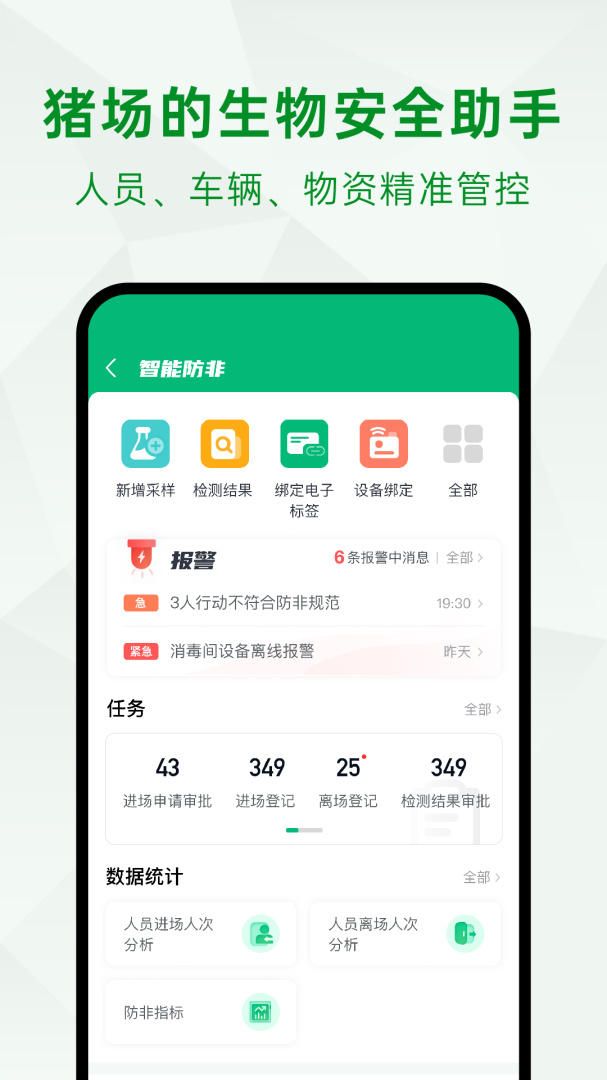 人、猪、物、场、企实时在线精准化管理,生产指标、业务数据实时采集汇总分析,异常主动推送,自动决策分析