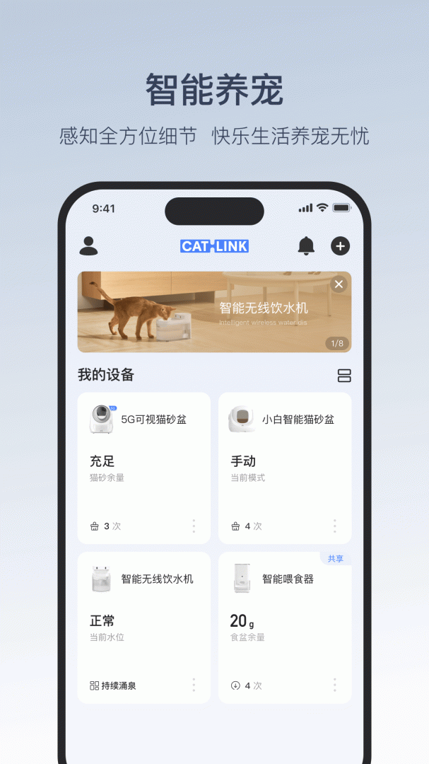 Catlink官方正版是一款专为猫主人设计的智能养猫应用,通过它,你可以方便地管理和监控你的宠物。连接与应用兼容的智能喂食器后,用户能够远程控制投喂进食,并能记录每次供餐量,保证即使在外出期间,猫咪也能获得适当的喂养。当粮食即将耗尽时,Catlink还会自动投放备用猫粮,让你无后顾之忧。应用允许与家人共享控制权限,只需线上授权,即可灵活协作照顾猫咪。