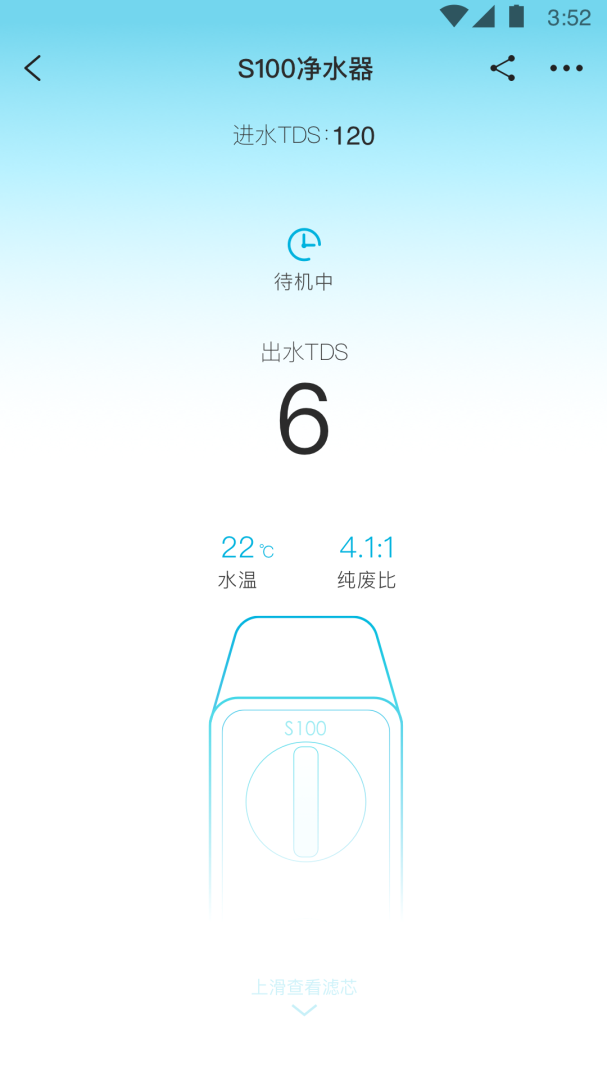 首页电量显示,预先知道净水器的工作时长,避免突然断电困扰。