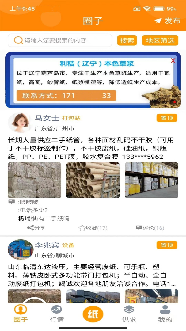 这里有废纸行业的最新动态,有全国范围内的供求信息,有同行们的交流平台,使用起来非常方便快捷