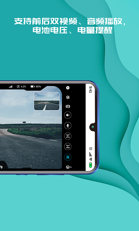 3、支持前后双视频、音频播放、电池电压、电量提醒