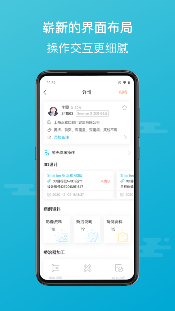 1、产品全线支持:APP支持所有正雅产品的选择,无论何种病例都能轻松上传,第一时间为病例定制方案;