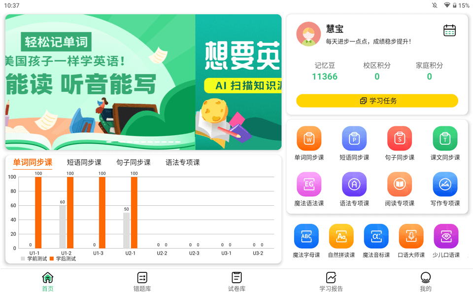4、全能闯关测评:听力/翻译/默写多维训练,智能评分查漏补缺