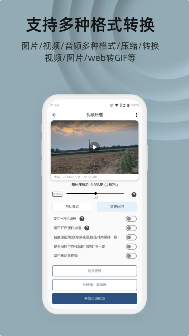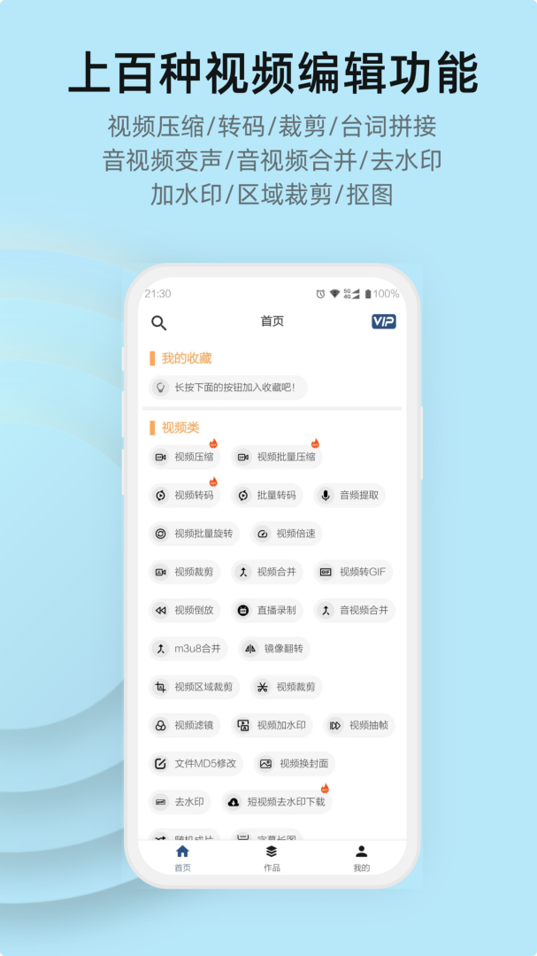 集影视频工具箱是一款支持视频压缩,视频裁剪, 图片压缩,视频转码,视频提取音频, 视频角度旋转, 视频移除音频, 视频倍速, 视频合并拼接, 视频转GIF, 视频倒放, 多张图片转GIF,m3u8视频合并录制,音视频合并等功能的App。