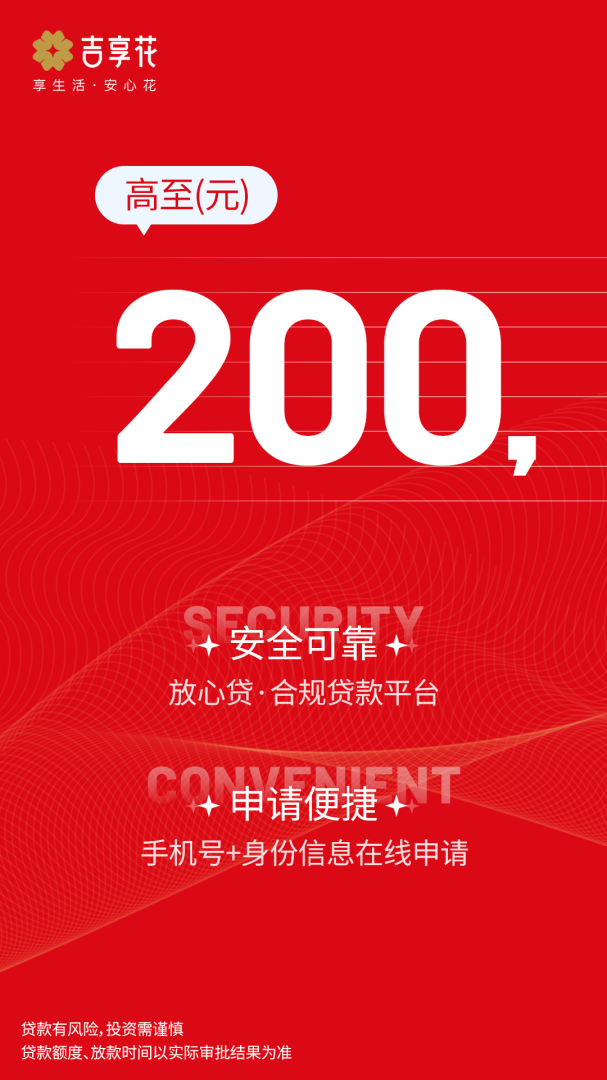 吉享花App是正规的借贷平台,可以为你解决掉急用钱的需求,实名认证信息注册,极速审核,一键借款10分钟放款,超低利率,安全保障,让你在用钱之时不必再求人,申请快捷方便