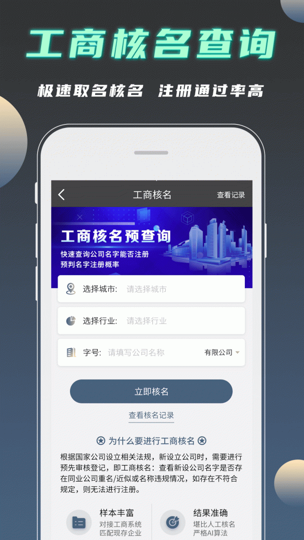 大数据支持下的公司名称智能推荐,避免重名问题。