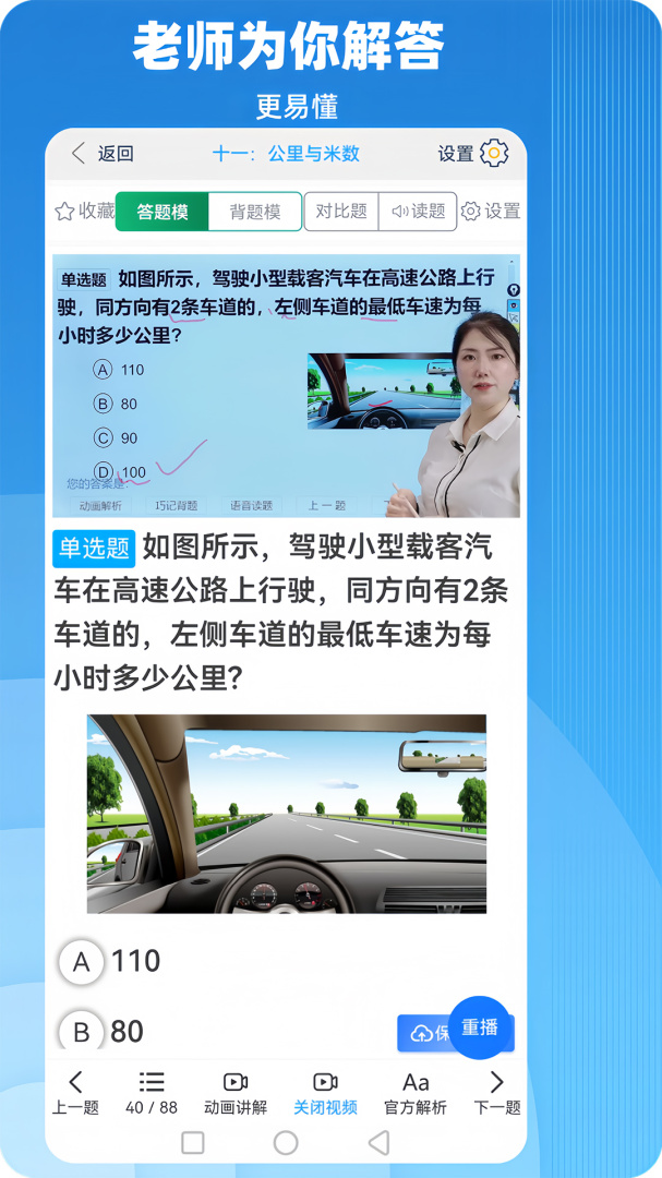 软件上汇集了大量驾驶员考试的真题,用户可以通过软件随时随地的在线学习,短时间内快速的提高自己的专业技能,给用户提供更便利的学习空间