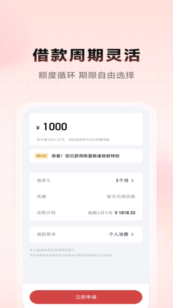 提供1.000元起,最高可达20万元的信用借款额度,支持随借随还,资金使用更自由,轻松应对日常周转或紧急用款。