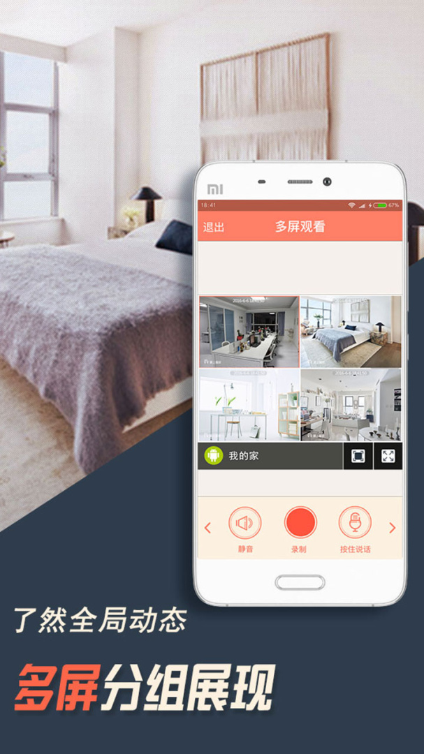 掌上看家支持手机、平板、电脑、智能电视等几乎所有带摄像头的设备,掌上看家可以让用户异地照看老人、宝宝,和监督员工、保姆,软件能够快速搭建远程视频监控安防系统,它可以让用户在一个屏幕上可同时观看多个采集端画面