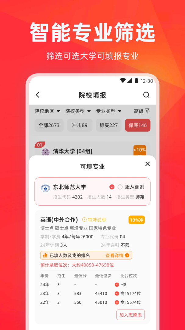2、帮助学生选择到心仪的院校,轻松完成高考志愿填报