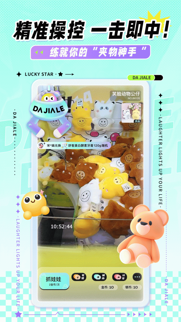 大夹乐抓娃娃是款功能强大的线上抓娃娃商城软件。在这里玩家可以体验真实夹娃娃的乐趣,夹到了娃娃还可以直接快递寄回家。在家就可以自由夹娃娃,满足大家的娱乐需求,操作简单,非常好用,不容错过