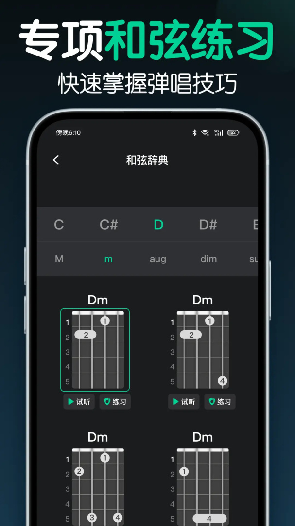 1、和弦库丰富的和弦练习、自定义和弦编辑,让弹唱歌曲更简单