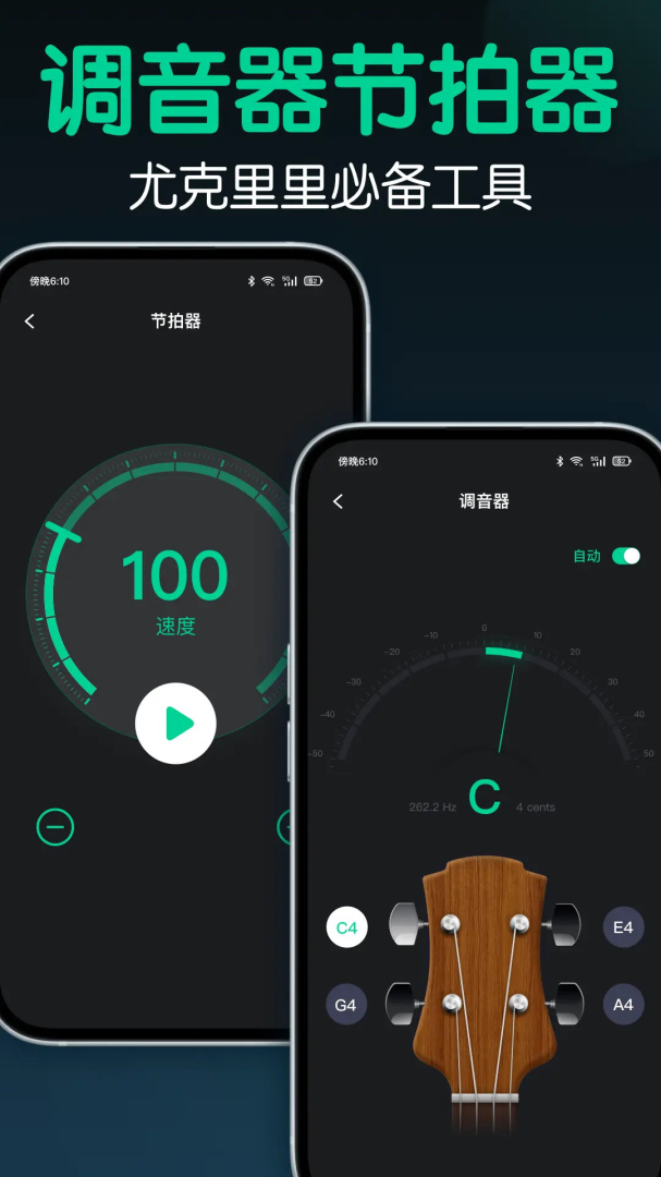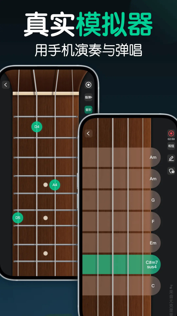 来音尤克里里功能全面,音乐库丰富,免费调谐器、节拍器和真实模拟器,专为初学者、高级音乐家和专业音乐家设计。它们是学习Ukri游戏的基本工具。