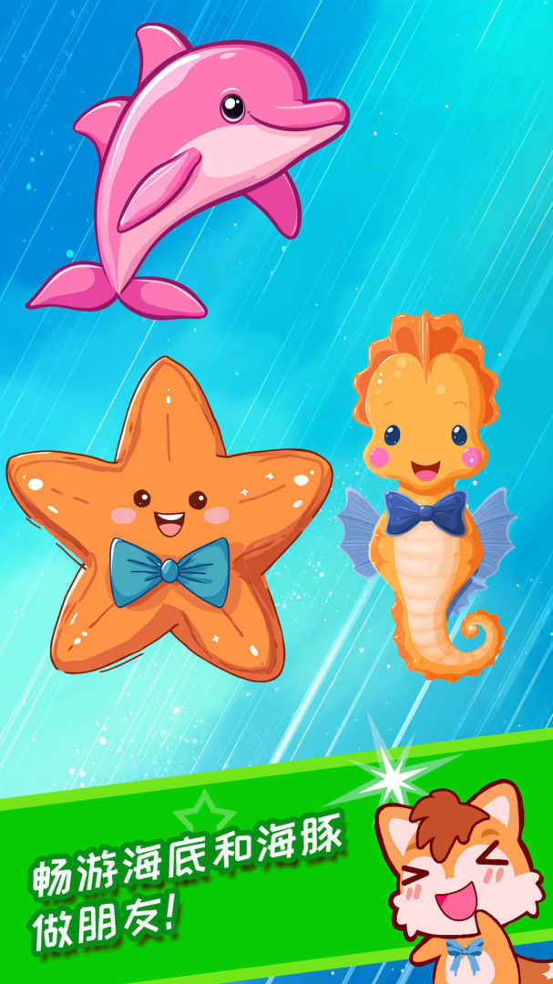 每一种动物都有详细的介绍,供用户进行一一的认知,每种海洋生物都能收听叫声,通过视听感官轻松认知各种动物,还有动听的音乐伴随孩子游戏,让孩子在轻松的氛围学习海洋动物知识