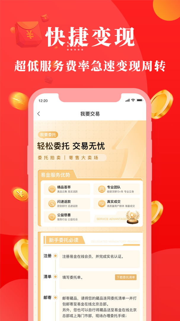 易金忠诚对待每位币友,如需钱币快速变现,易金将拿出超过50%币值的现金先行支付,后续的款项会二次返还。