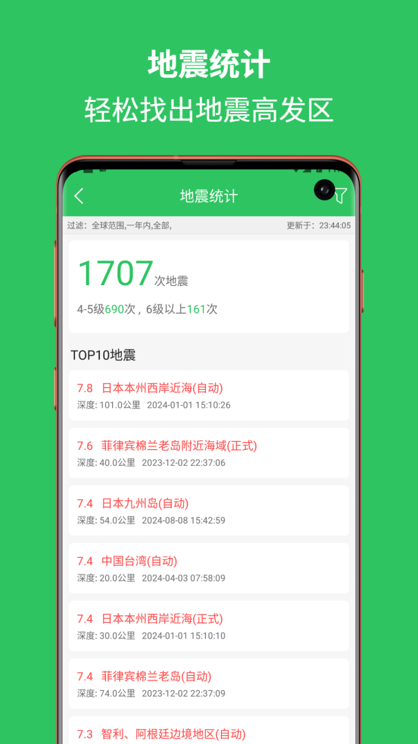 1、实时地震监测功能利用全球地震机构数据,以列表与地图形式展示最新震情,支持按范围、时间与震级筛选,信息更新迅速无延迟。