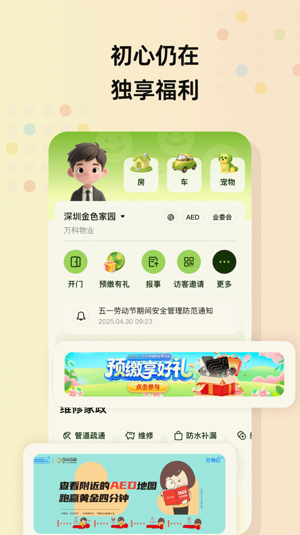 支持线上报修、缴费等基础服务,减少线下奔波,提升社区生活的效率与舒适度。