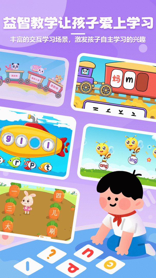 原创拼音儿歌将字母发音编成朗朗上口的旋律,帮助孩子轻松记忆。