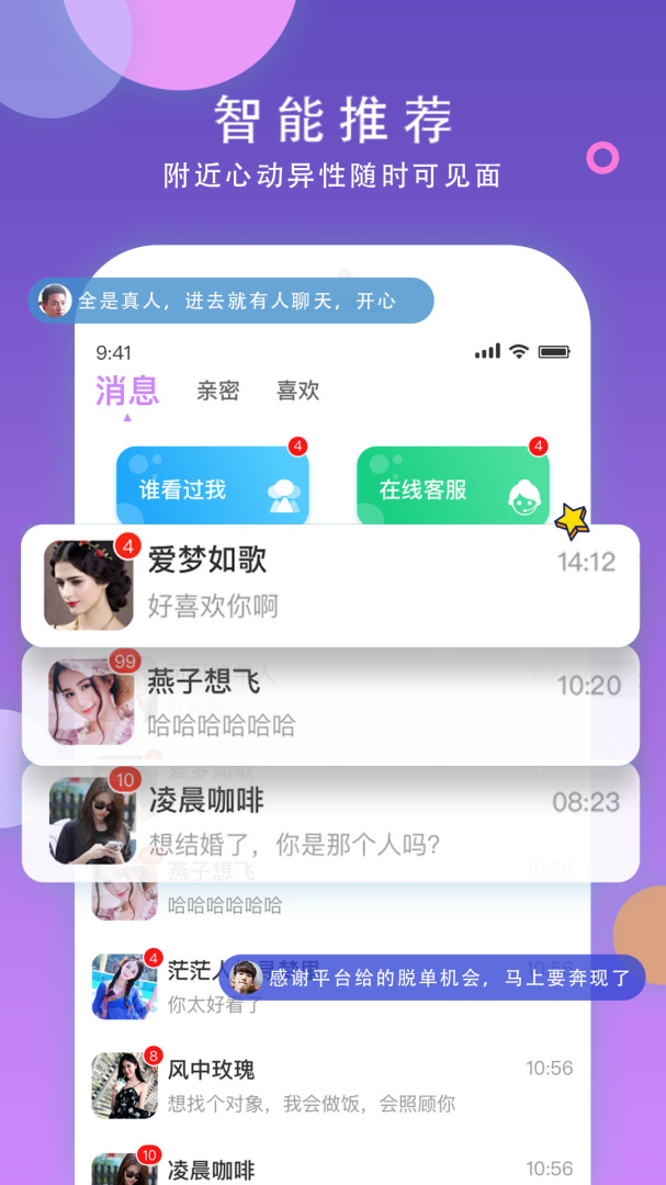 4、智能推荐,附近心动异性随时可见面