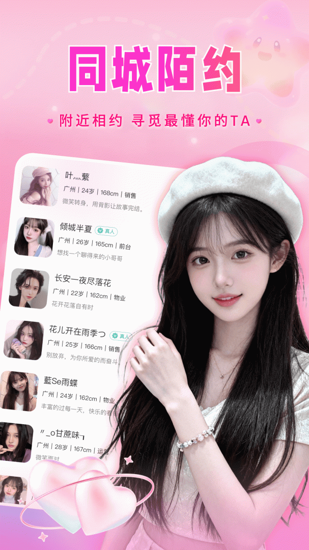 先进智能匹配算法,依据兴趣爱好、地理位置等多维度信息,快速为你筛选同城有缘人,大幅提升脱单概率。