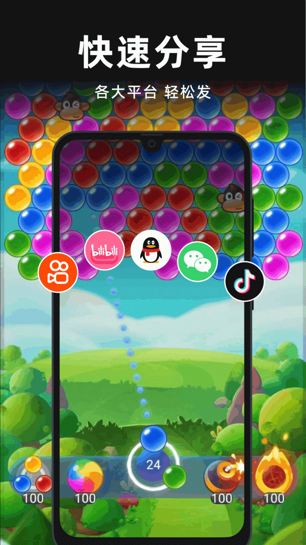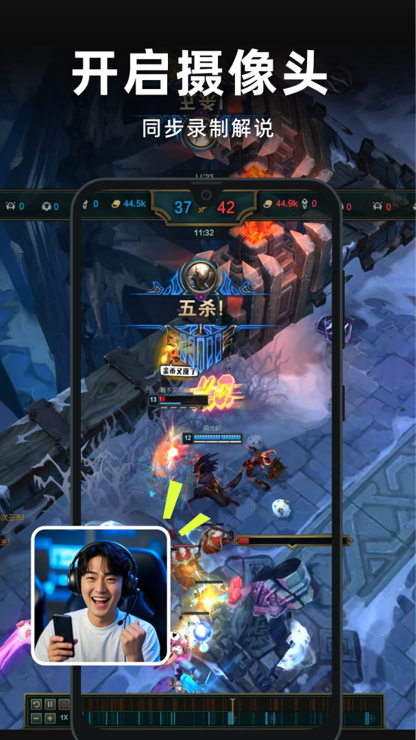 支持横屏、竖屏录制,悬浮窗录制,提供多种画质选择,还能游戏直播并分享至社交平台。