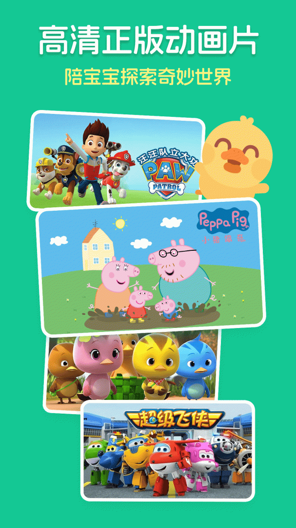 3、海量热门动画,正版小猪佩奇、海绵宝宝、哆啦A梦、倒霉熊、可可小爱、汪汪队、海底小纵队;