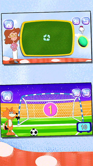 10、踢足球——男孩最爱的足球玩法,选出相应数字的足球数量,然后将足球踢进球门吧,提高宝宝学习的动力和主动性,寓教于乐。