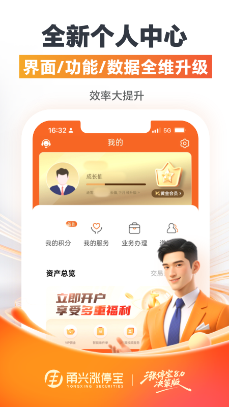 甬兴涨停宝作为一款专业的证券投资类APP,目前包含自选股、行情、交易、理财、开户和网厅部分功能。