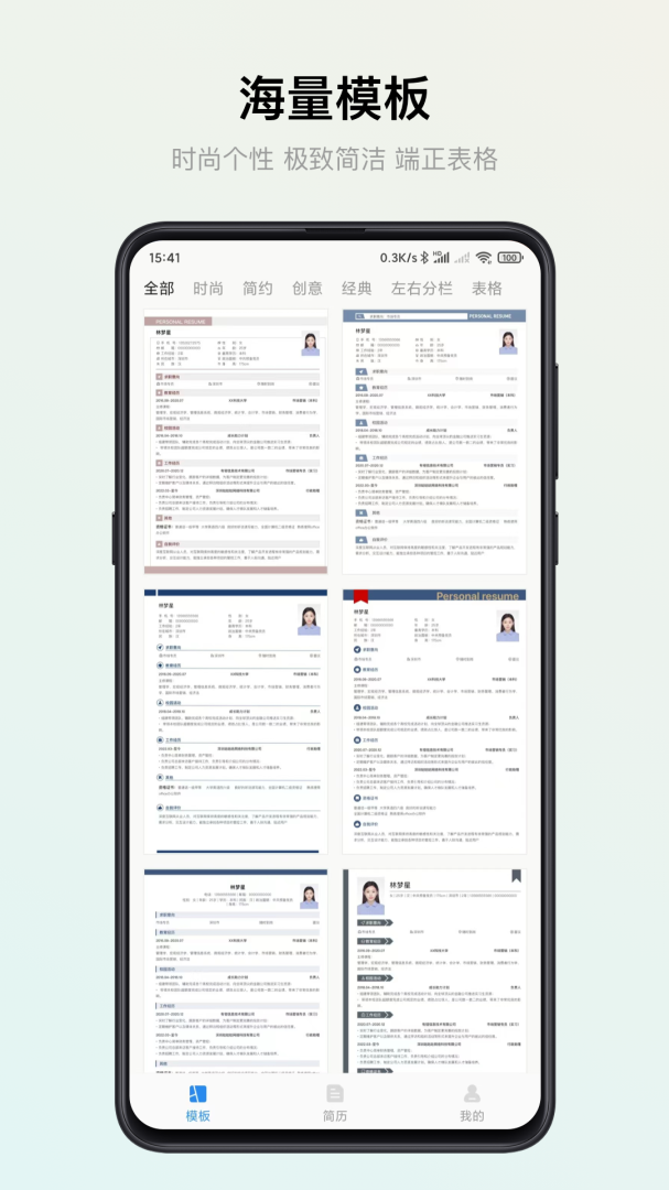2、众多精美简历模板,制作一键切换,方便快捷;