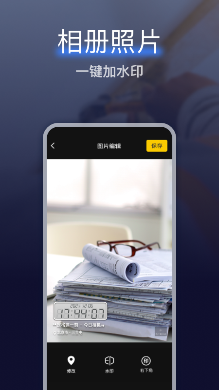 搞定相机水印最新版是一款专注于水印添加的摄影应用,致力于为用户提供简单便捷的拍照体验。它内置丰富的水印模板,能够满足各种需求,不管是记录日常还是工作打卡,都能轻松应对。通过自定义功能,你可以根据个人风格设计独特的水印,随时将其一键添加到照片上。操作方式直观,支持修改时间等设置,让你在拍照时不仅能个性化作品,还能突出信息标识。