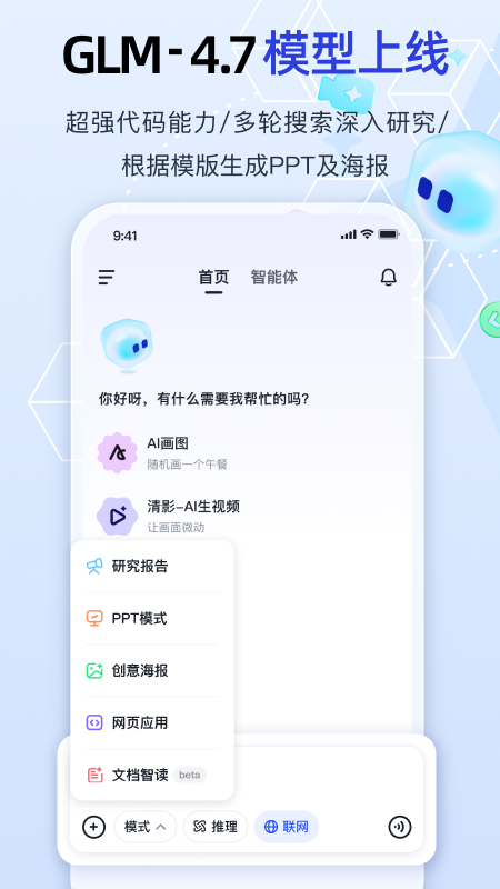 智谱清言最新版是一个多功能的人工智能创作平台,专为办公和学习设计,具备丰富的功能。融合了先进的AI技术,支持智能写作、即时对话以及知识问答,为用户提供高效的协助。通过深度学习与自然语言处理,平台可以生成精确、合理的文本和回复。新增的特色包括流程可视化生成和PDF语义检索,使得信息查找和处理更加轻松。智谱清言还能够理解中英双语输入,并提供针对各种主题的即时解答,不管是生活问题还是专业领域的咨询。多轮对话功能让用户可以进行深入交流,获取更详细的信息和建议,让每次互动都变得更加智能和人性化。