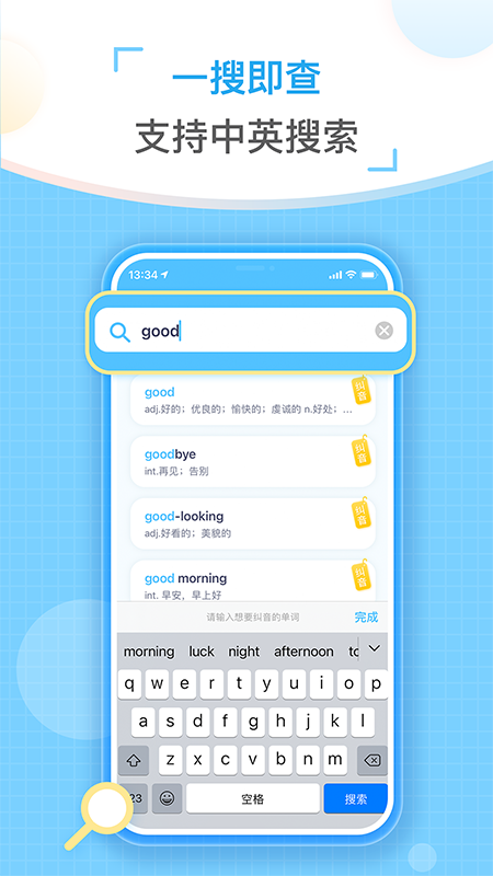 按照年龄匹配单词,支持中英搜索查词。