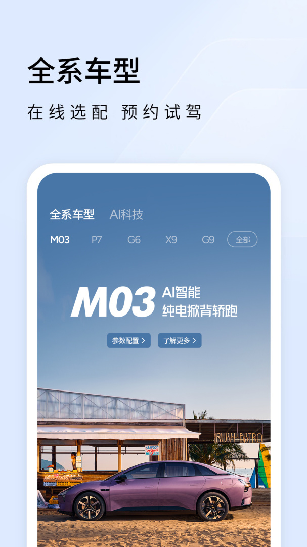 足不出户秒购新车,在线设计你的小鹏;个性定制、金融服务、快速支付,省钱省事更贴心。
