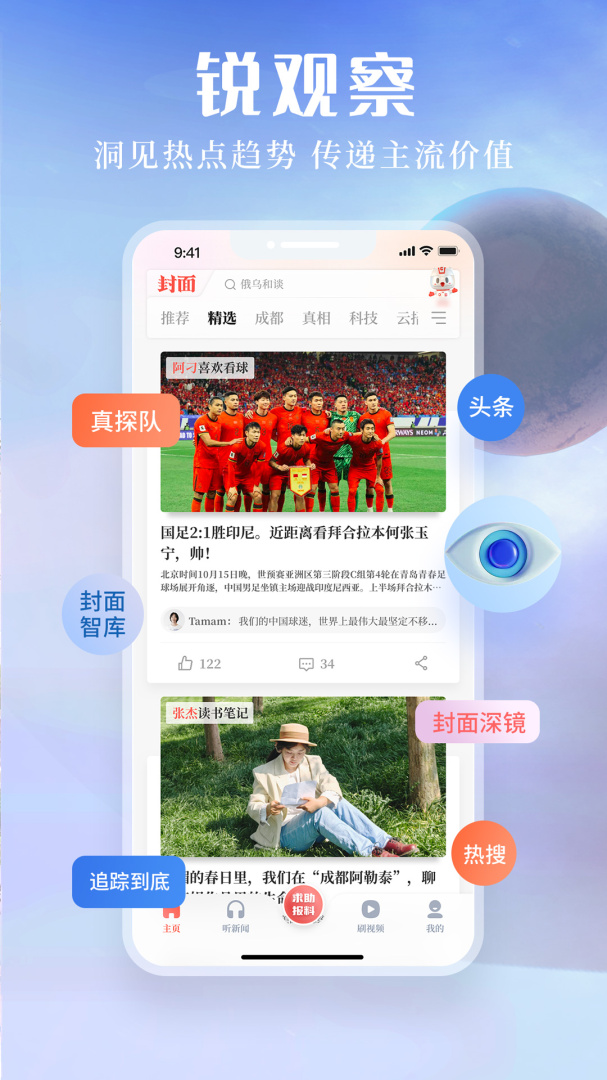 封面新闻App是一款专为年轻人设计的新闻应用,通过先进科技与丰富的原创内容,引领用户获取多样化的信息。它结合文字、视频和直播,为用户呈现个性化推荐,满足不同兴趣和需求。通过青蕉社区,用户可以分享创意,参与互动,形成一个充满活力的UGC平台。应用的积分系统激励用户的参与,增强了社群感。在追踪热点和深度报道之间,封面新闻不断优化用户体验,让每一条信息都生动而有趣。正在成为年轻人了解世界、拓宽视野的重要工具,重塑他们的媒体消费方式。
