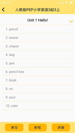 2、智能听写模式自动播报词语,语音识别自动批改结果
