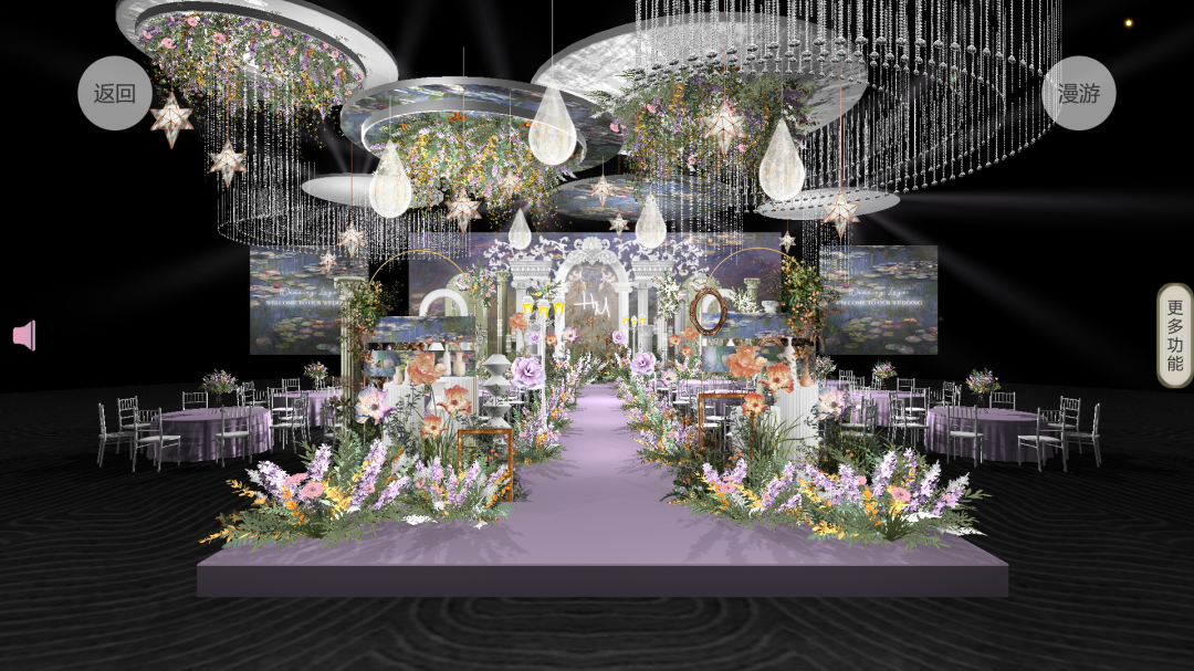 2. 实时3D场景渲染引擎支持动态调改婚礼方案,全息投影技术复现宴会厅实景效果