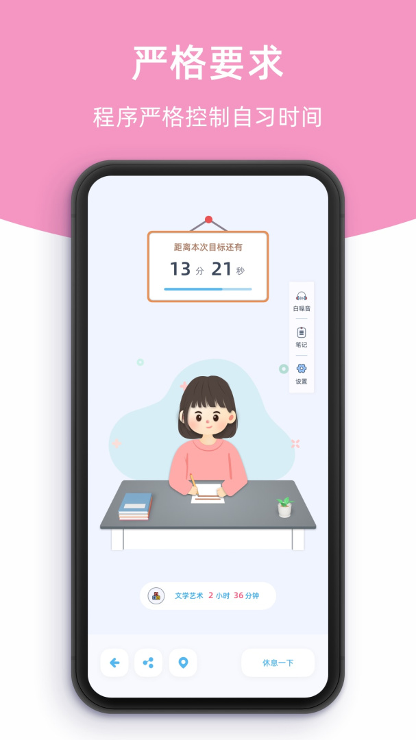 每日统计:自习数据会被记录并统计,用户可以随时查看自己的学习进度和效果。