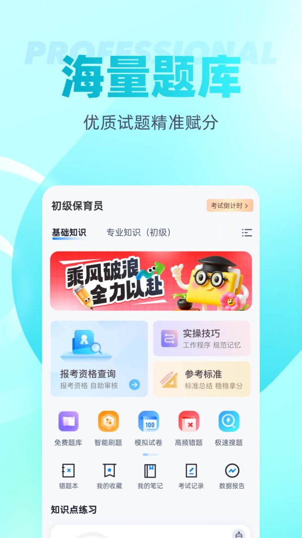 6、保育员题库内含考点练习,全国通用卷以及地区卷模拟练习,以及按照固定考试比重的随机式的抽题的真题考场