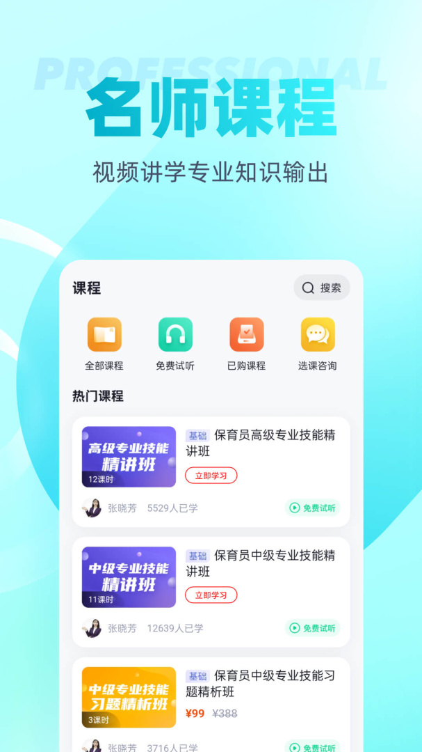 专业的保育员备考学习app,随时随地打开手机就能够高效的学习巩固,一些重要的知识点会有详细的教学解析,一定不要错过