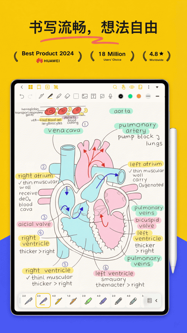 采用高精度压感技术,书写过程几乎没有任何延迟,带来如同在纸上书写般的流畅体验,让用户享受丝绸般顺滑的写作感受。