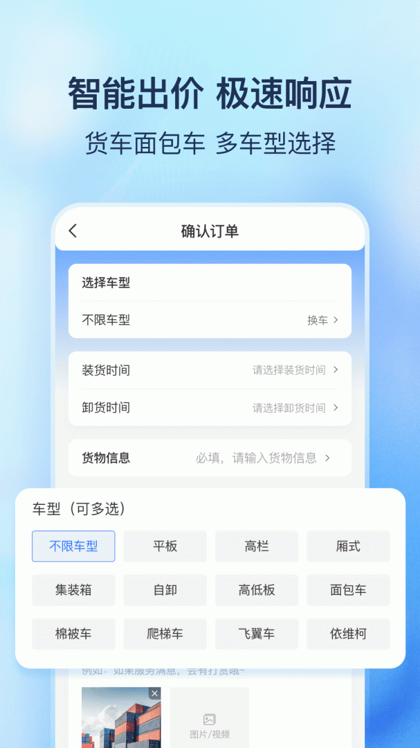 提供智能匹配货车,用户可以通过该软件轻松找到货车进行货物运输。支持实时查看物流信息,确保运输途中货物的安全,优质售后服务,货运更具保障