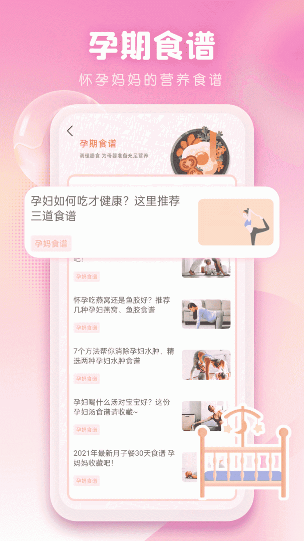 用户可以在上面获取大量的孕期注意事项和胎教信息,还有很多宝宝辅食食谱、育儿等全方面的母婴信息,可以帮助大家了解如果照顾好每一阶段的宝宝,不会因为是第一次当妈妈而感到焦虑