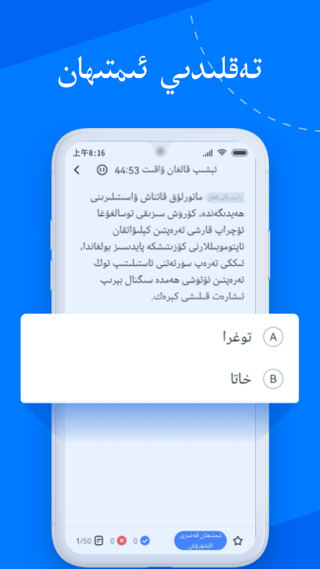全面支持维吾尔语操作界面,涵盖科目一理论考试仿真模拟及科目三灯光考试官方录音还原,真实还原考试场景,语言无障碍,学习更轻松、理解更透彻。