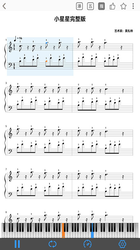 5、提供海量曲谱并支持一键转简谱、任意变调(如转C调),可自由调整播放速度、设置循环段落,配合音轨与声部独立控制,让曲谱适配不同学习阶段。